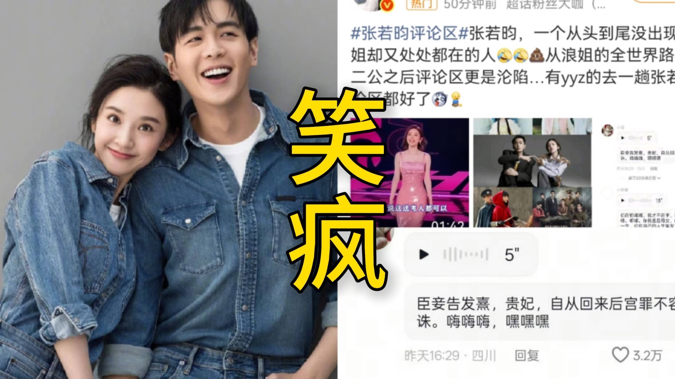 说起来张若昀也不是第一次被老婆“连累”上热搜了。之前唐艺昕参加综艺时随口说他“在家爱说冷笑话”,结果网友把他早年采访里的“土味情话”全扒了出来;这次更狠,连他待播剧《千里江山图》的超话都被“唐艺昕rap”的梗刷屏,剧方无奈之下只好发文“求放过”,却意外带涨了300%的关注度。最绝的是,有网友翻出张若昀写的“樱桃树备忘录”——里面记着唐艺昕的喜好,连“喜欢吃樱桃”这种小事都写得清清楚楚,大家这才恍然大悟:原来硬汉人设的张演员,早就被老婆拿捏得死死的!现在打开张若昀的微博评论区,简直像误入了“抗抑郁基地”。有人刷“范闲管管你家郡主”,有人刷“建议夫妻俩出个《夫妻互坑合集》”,还有CP粉把两人早年参加活动的视频剪辑成“搞笑向”,播放量直接破百万。不得不说,这对夫妻真是把“相爱相杀”玩明白了——你负责制造快乐源泉,我负责承包笑点,连网友都忍不住感叹:“这俩人不参加喜剧人真是屈才了!”